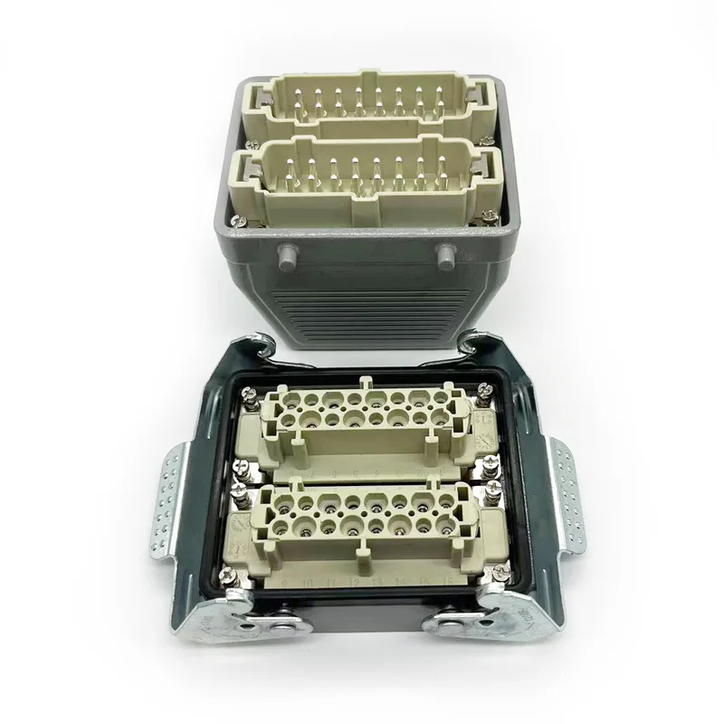 A hagyományos megoldás csatlakozódobozokat használ a jelek és a teljesítmény továbbítására. Azonban miután a vonalat szállításhoz leválasztják, a hibakeresés meglehetősen nehézkes. A CHTAR tartós, 32 tűs TG Heavy Duty csatlakozókat alkalmazzák, amelyek nemcsak a csatlakozási problémát oldják meg, hanem a kényelmes csatlakoztatási és kihúzási módszer is lehetővé teszi az ügyfelek számára, hogy feleannyi erőfeszítéssel kétszer jobb eredményt érjenek el. Ez a nagy teherbírású csatlakozó alkalmas 32 tűs HE, HD, HEE, HDD és más nagy teljesítményű csatlakozókhoz. Használható 2 db HE-016-M vagy HE-016-F csatlakozóval, valamint 2 db HB-006-M vagy HB-006-F csatlakozóval. Ez a csatlakozó a felső beviteli módszert alkalmazza.