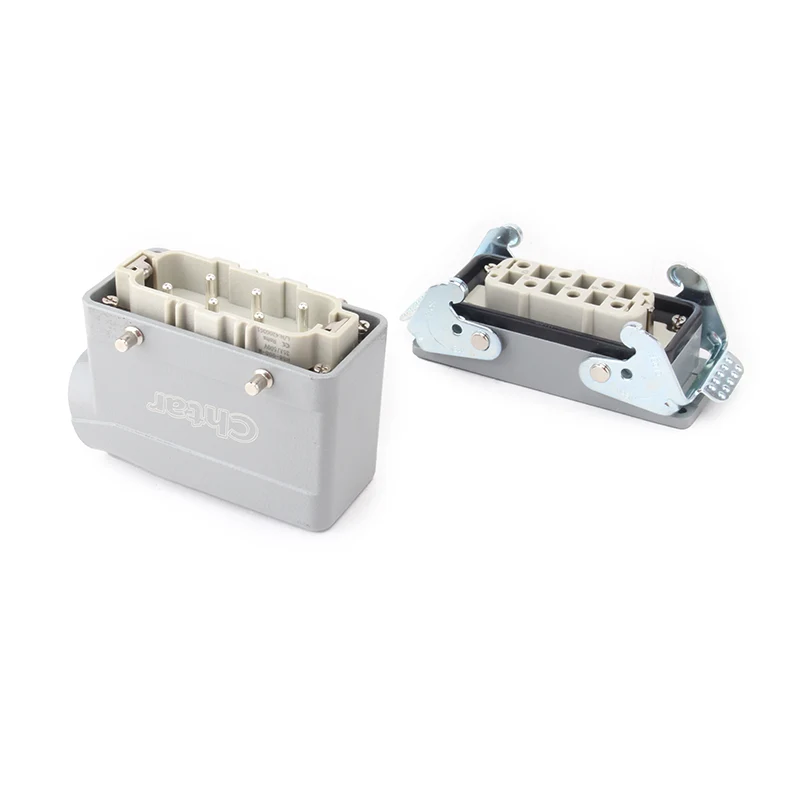 Ez a CHTAR kiváló minőségű 35A 6 tűs betétes nagy teherbírású csatlakozó illeszkedik a 35A H16B-TG vagy H16B-TS ház nagy teherbírású csatlakozóházához. Nagy szilárdságú PC anyagból készült, és 6 tűvel van összeszerelve H16B alumínium házban. 12 érintkezős is lehet, így kétszer annyi, mint a H32B-TG vagy a H32B-TS.
