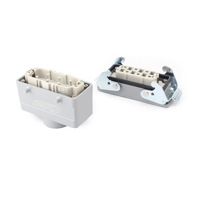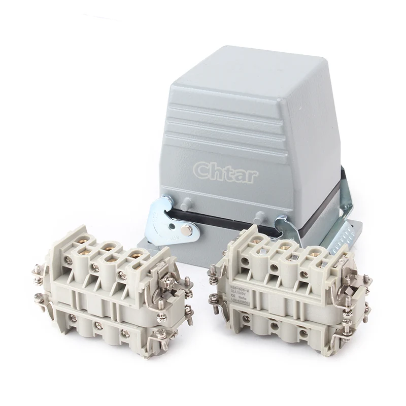 35A 6 tűs betét Nagy teherbírású csatlakozó megmunkált H16B alumínium. Nagy teherbírású csatlakozó háza. Erős PC anyagból készült és sárgaréz ezüstözött .CHTAR sárgaréz csapok ezüsttel vannak bevonva, ami jó minőségű és jobb elektromos vezetőképességű. Tömítőgumit tartalmaz, hogy jó vízálló tulajdonságú legyen.