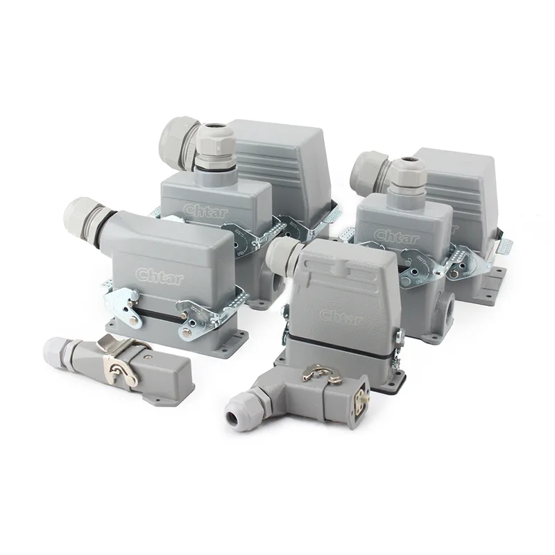 Ezt a tartós, 6 tűs CHTAR TG nagy teherbírású csatlakozót széles körben használják különféle HDC-csatlakozókban, mint például HE, HD, HEE, HDD stb. A termék megfizethető, és számos országba exportálják. A biztonsági védelem szempontjából a csatlakozó védelmi fokozata elérheti az IP65/IP68-at stb., hatékonyan megelőzve a port és a szennyeződést. Tervezési szempontból kiváló minőségű alumíniumból készült, és alkalmas kültéri használatra.