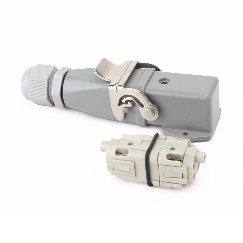 Ez a CHTAR tartós M HA 4 tűs betétes nagy teherbírású csatlakozó illeszkedik a HA sorozatú nagy teherbírású csatlakozóházhoz. Nagy szilárdságú PC anyagból és 4+1 csapból készült, alumínium házba szerelhető.